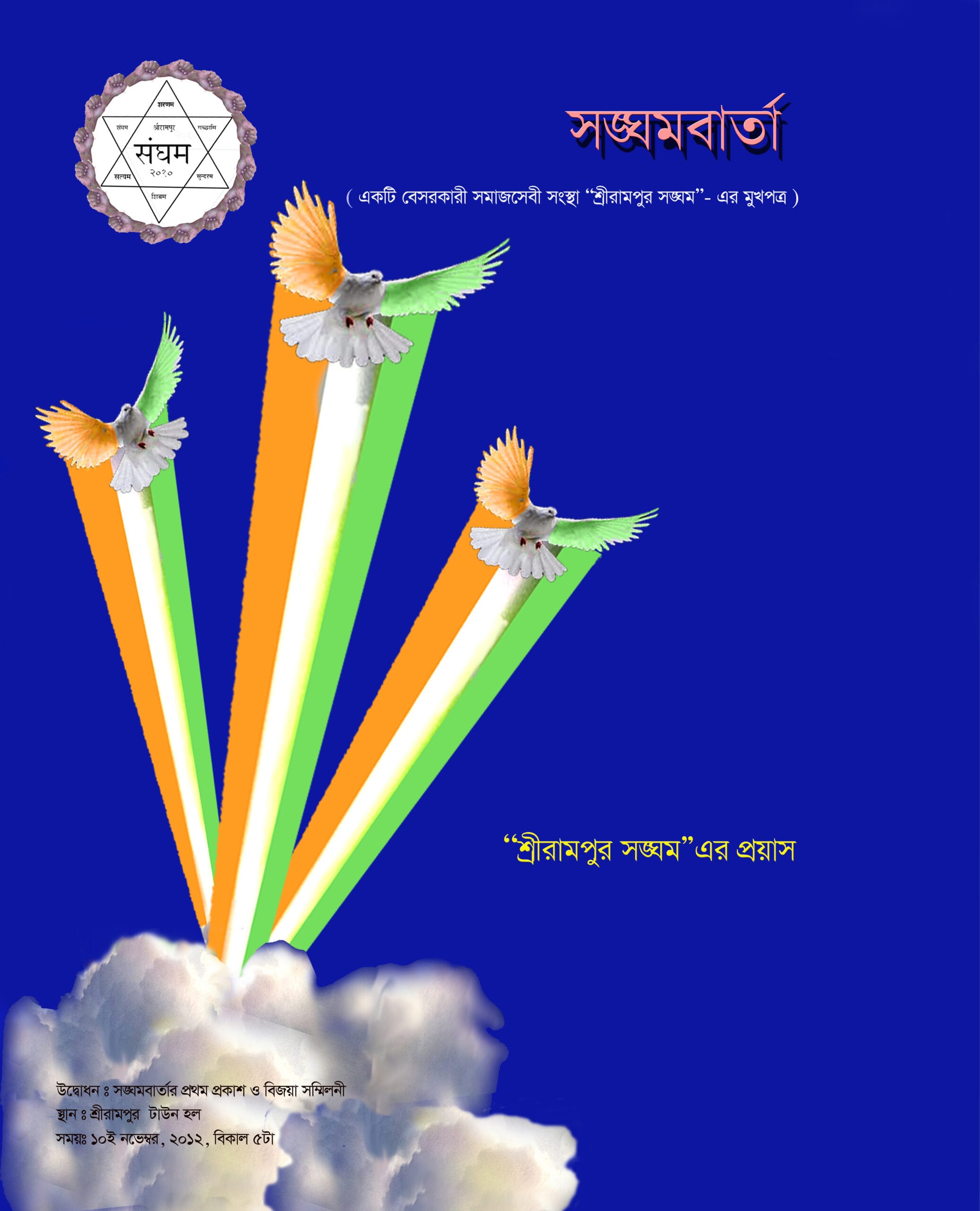 First magazine published on 10th November, 2012 at Serampore Town Hall. Every year we try to published a magazine. We focus on life history of great personalities of our country. We focus on our activities, we collect good writings on different subjects from renowned persons to enrich our magazine and also we try to explore the cultural quality of members and others of the society who remain in shell of shyness. This encourages everyone who holds his pen once on pages of ՝՝ Sanghambarta ”.